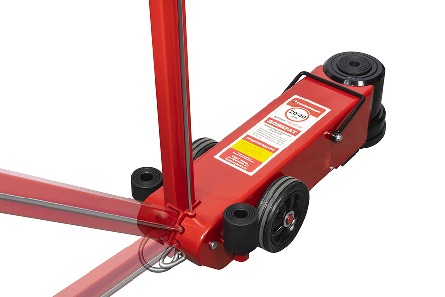 Подкатной пневмогидравлический домкрат имеет пневматический привод, способствующий ускоренному подъему гидравлического цилиндра и применяется для подъема автомобиля при ремонте.